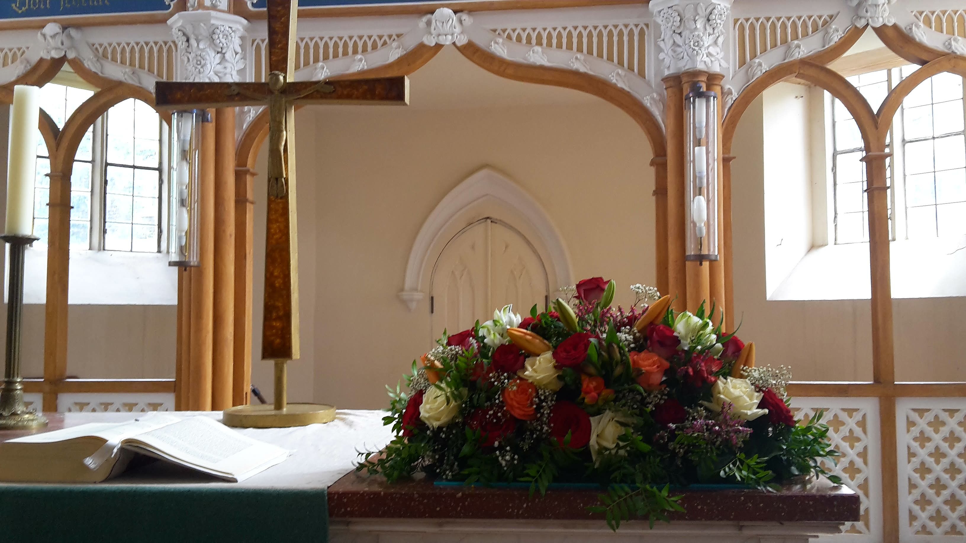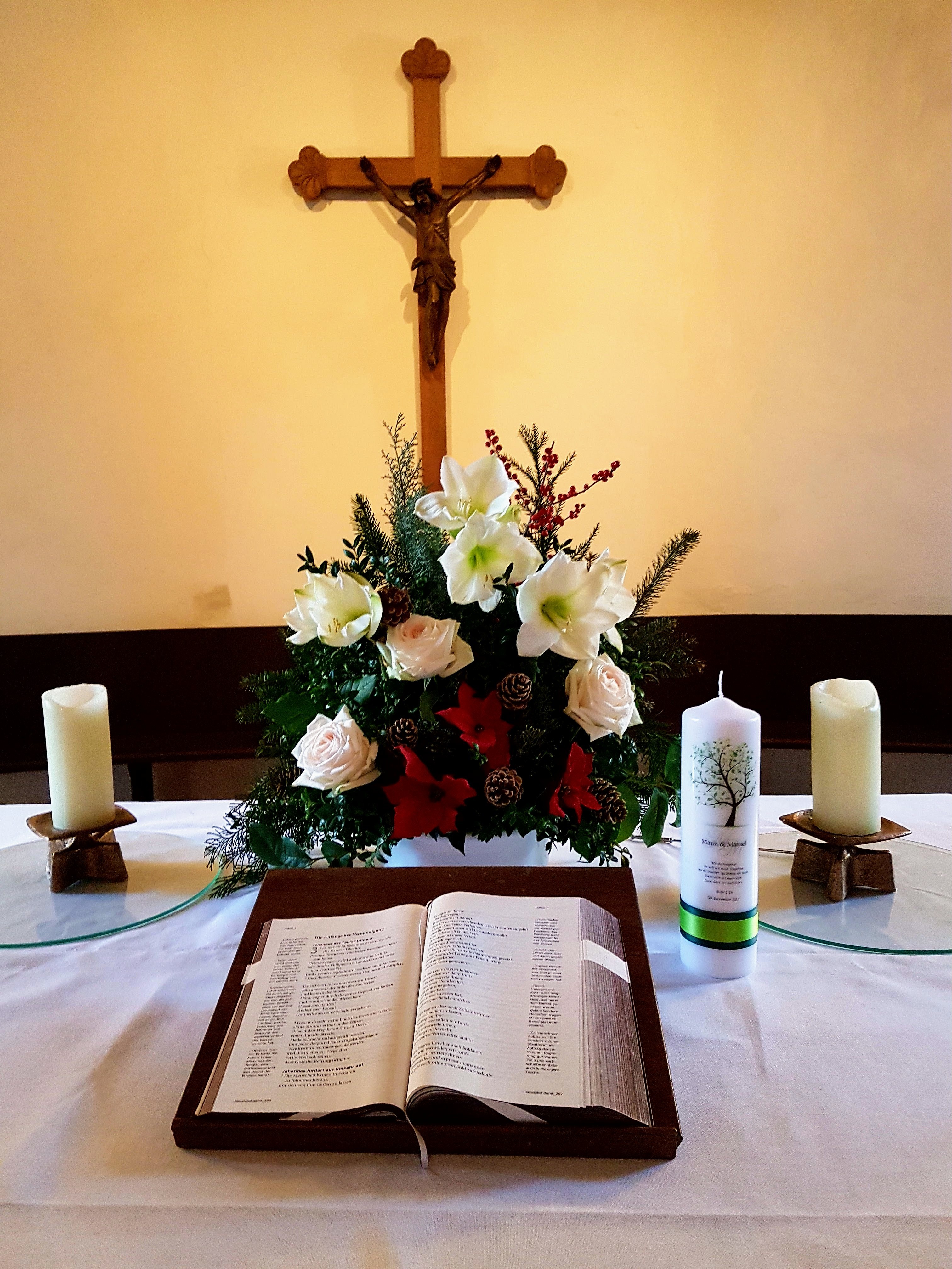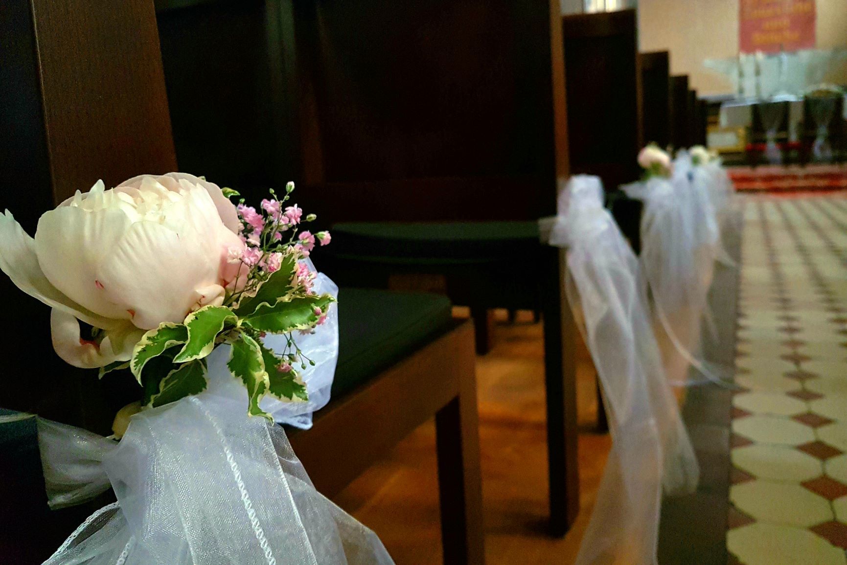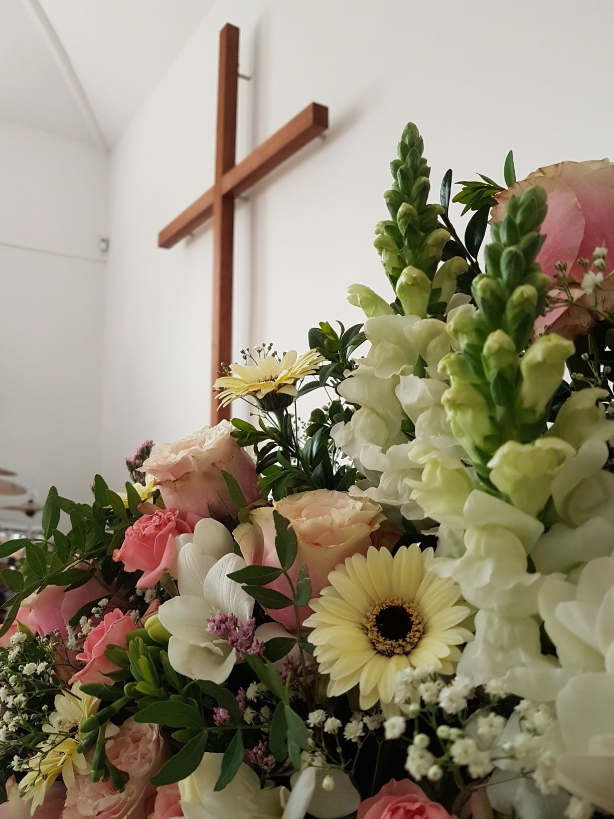 Es ist eine wunderschöne Aufgabe, die besondere Athmosphäre in einer Kirche zu begreifen und ihre eigene Schönheit hervorzuheben. Auch hier wird der Farbwunsch und die Blütenauswahl des Brautpaares dem Raum angepasst und so ensteht ein stimmiges Gesamtbild.